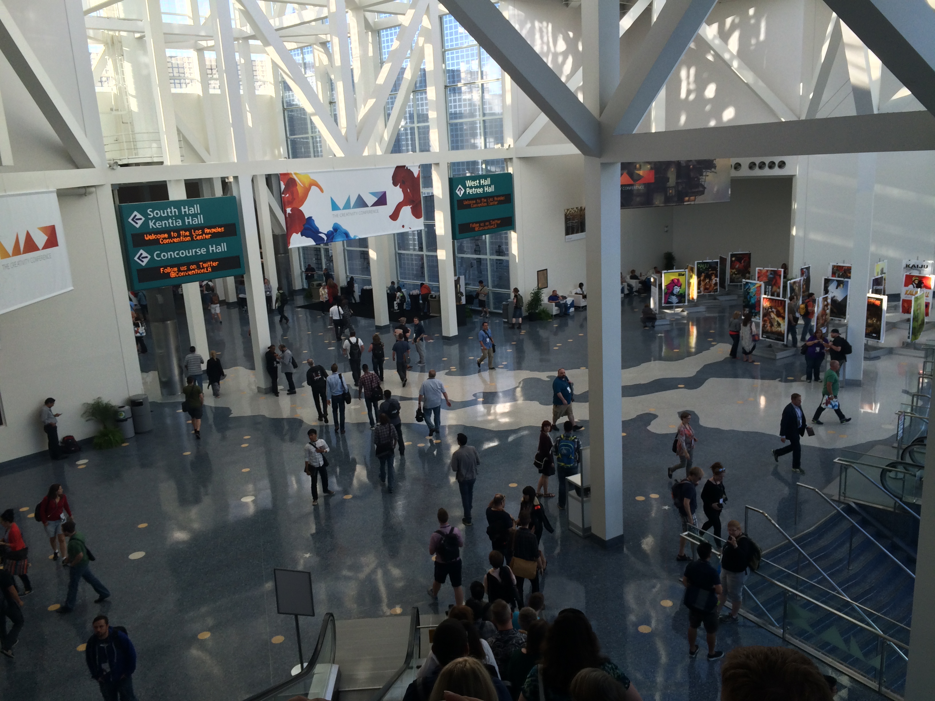 I rushed to the Convention Center to pick up my badge, schedule, my swag and breakfast. I was there at 6:50 am expecting to wait for the doors to open at 7:00am but there were already several attendees buzzing around at the community pavilion and all the booths were populated by smiling conference employees, ushering us around and helping us print out our schedules.